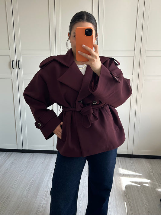 Bordo Kısa Trençkot