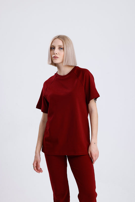 Bordo Kadın Tişört Eşofman Takım – %100 Pamuk Rahat Günlük Stil