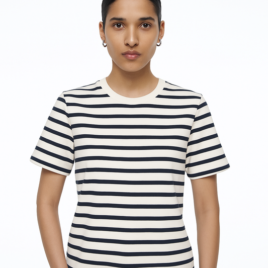 %100 Pamuk Kadın Çizgili Tişört - Rahat ve Şık Günlük Giyim