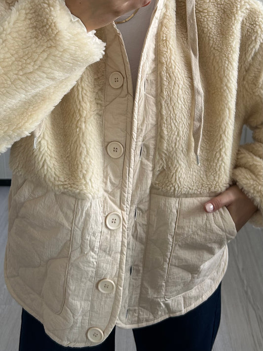 Bej Kapitone Peluş Mont