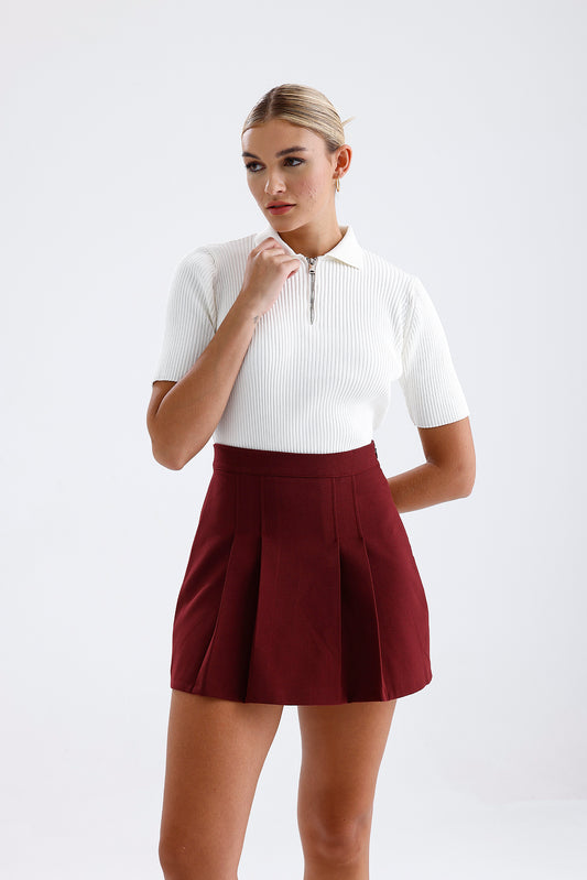 Kadın Pileli Etek – Bordo Renk Pile Detaylı Modern Kesim