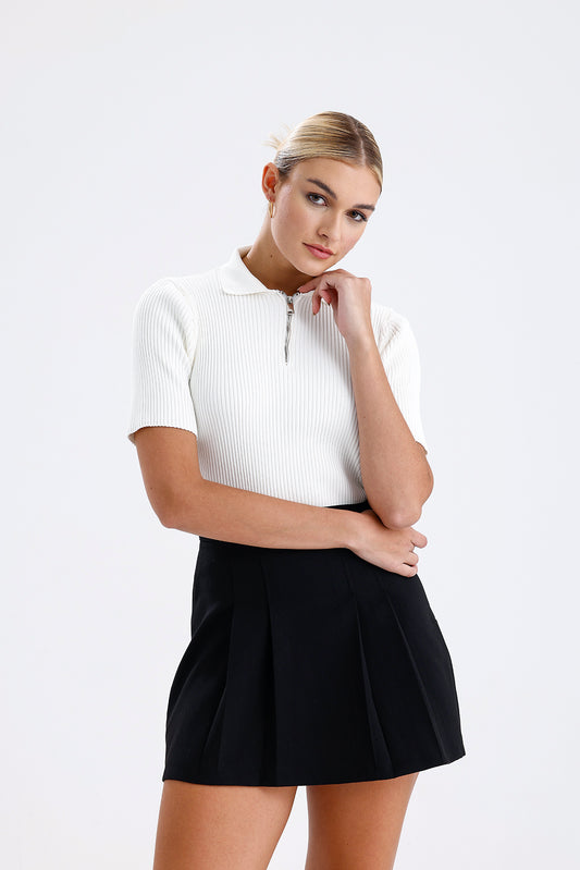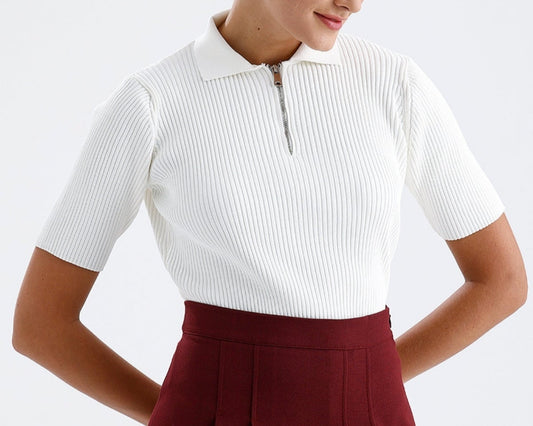 Kadın Triko Tişört – Ekru Fermuarlı Modern Günlük Üst