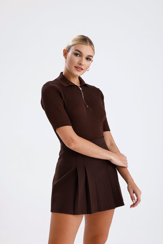 Kadın Pileli Etek – Kahverengi Pile Detaylı Modern Kesim