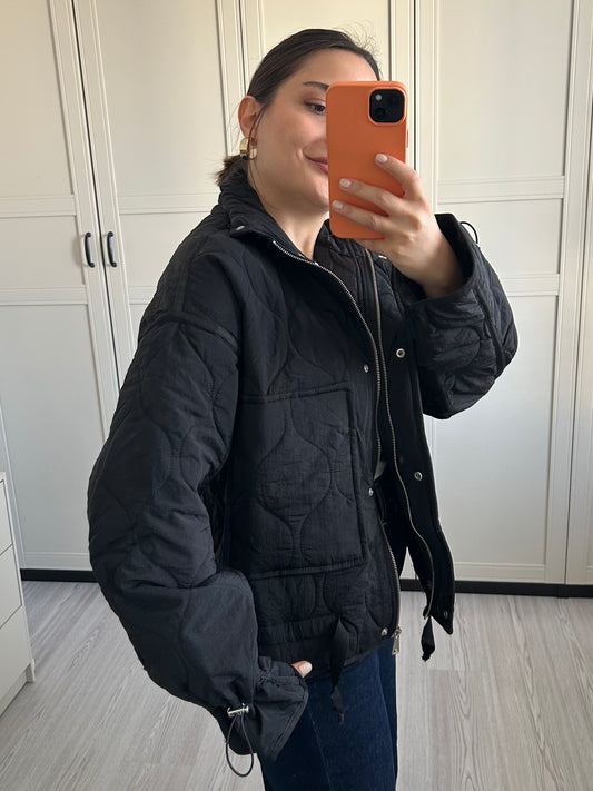 Kadın Triko Tişört – Siyah Fermuarlı Modern Günlük Üst