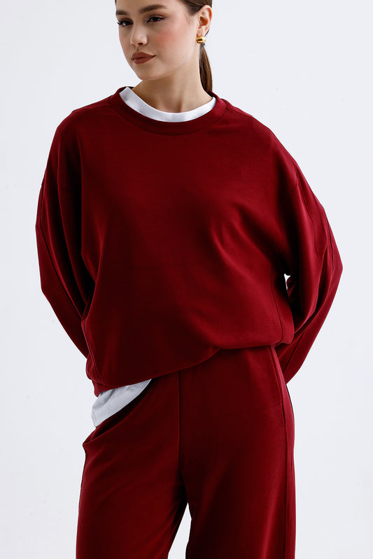Kadın Modal Sweatshirt – Bordo Renk Yumuşak ve Rahat Günlük Üst