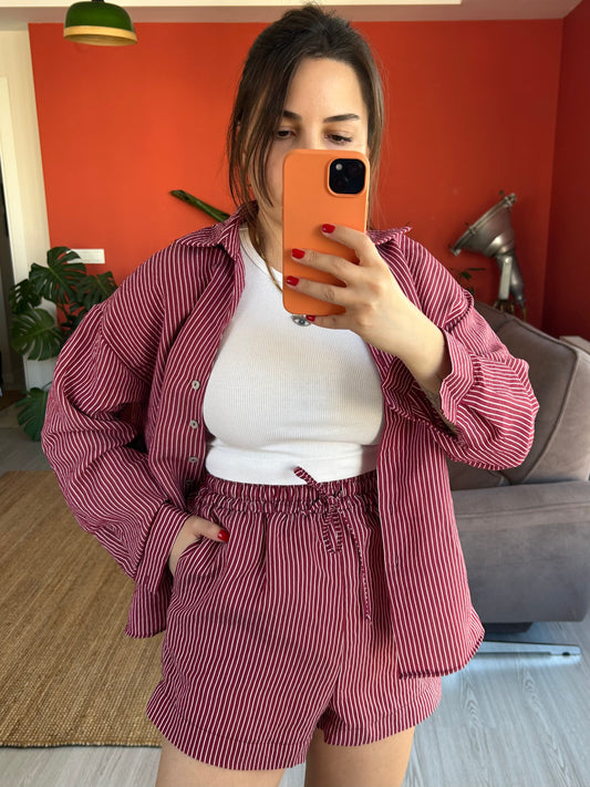 Tensel Şortlu Takım Kırmızı Çizgili – Modern ve Rahat Stil