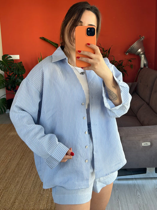 Tensel Şortlu Takım Mavi Çizgili – Modern ve Rahat Stil