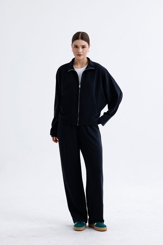 Kadın Modal Eşofman Takımı – Çizgili Lacivert Rahat ve Şık İkili Set