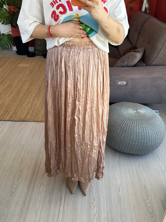 Kadın Saten Etek – Bej Renk Hafif ve Dökümlü Günlük Stil