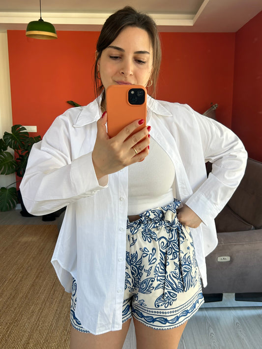 50% İndirimSaten Kumaşlı Bağlamalı Desenli Şort