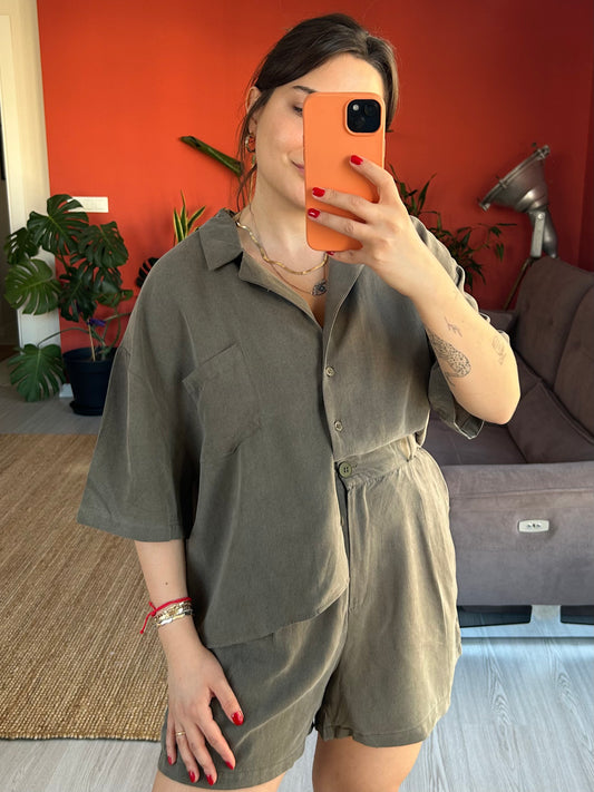 44% İndirimTensel Şortlu Takım Haki – Modern ve Rahat Stil