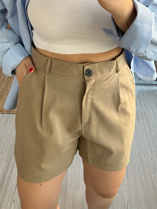 35% İndirimVizon Kumaş Şort | Yüksek Bel Pileli Model