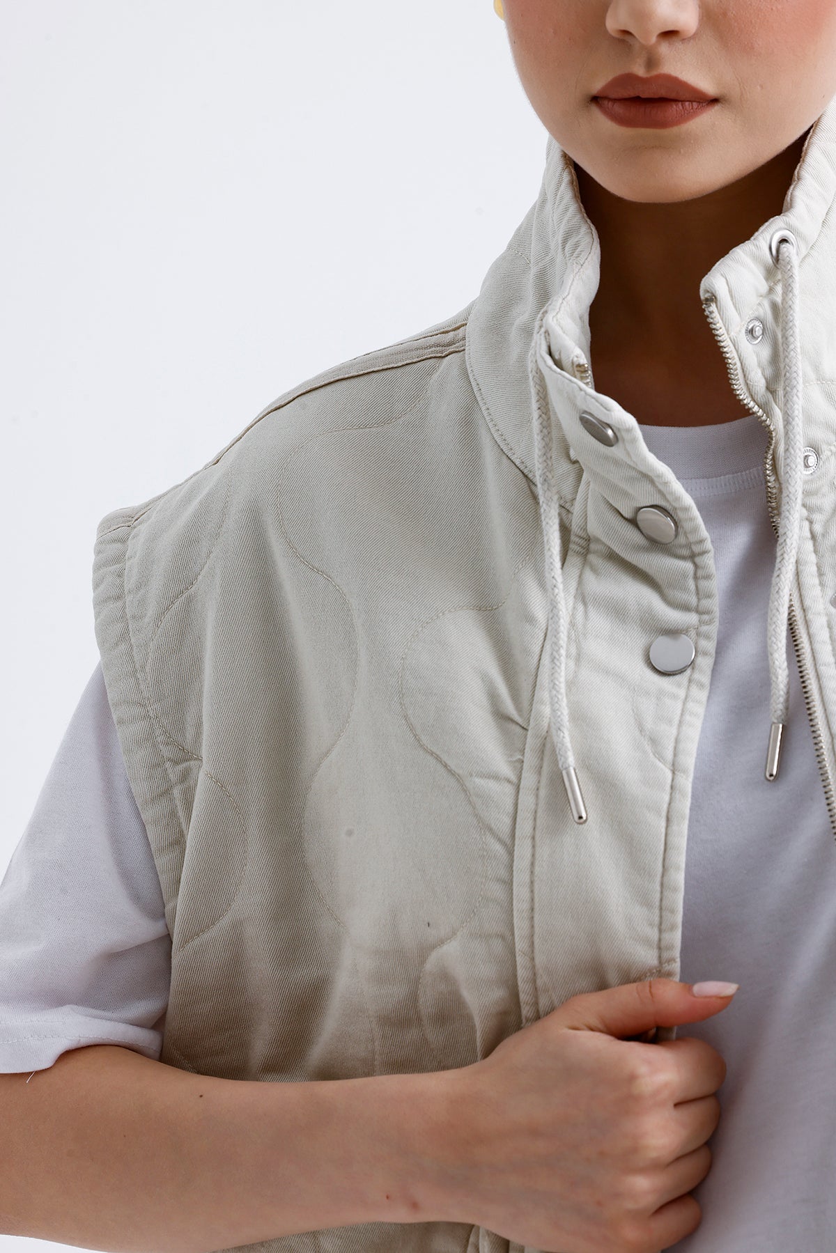 Kadın Kapitone Yelek – Bej Renk Hafif ve Şık Dış Giyim