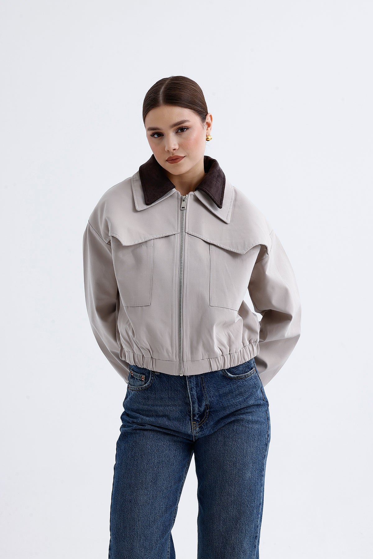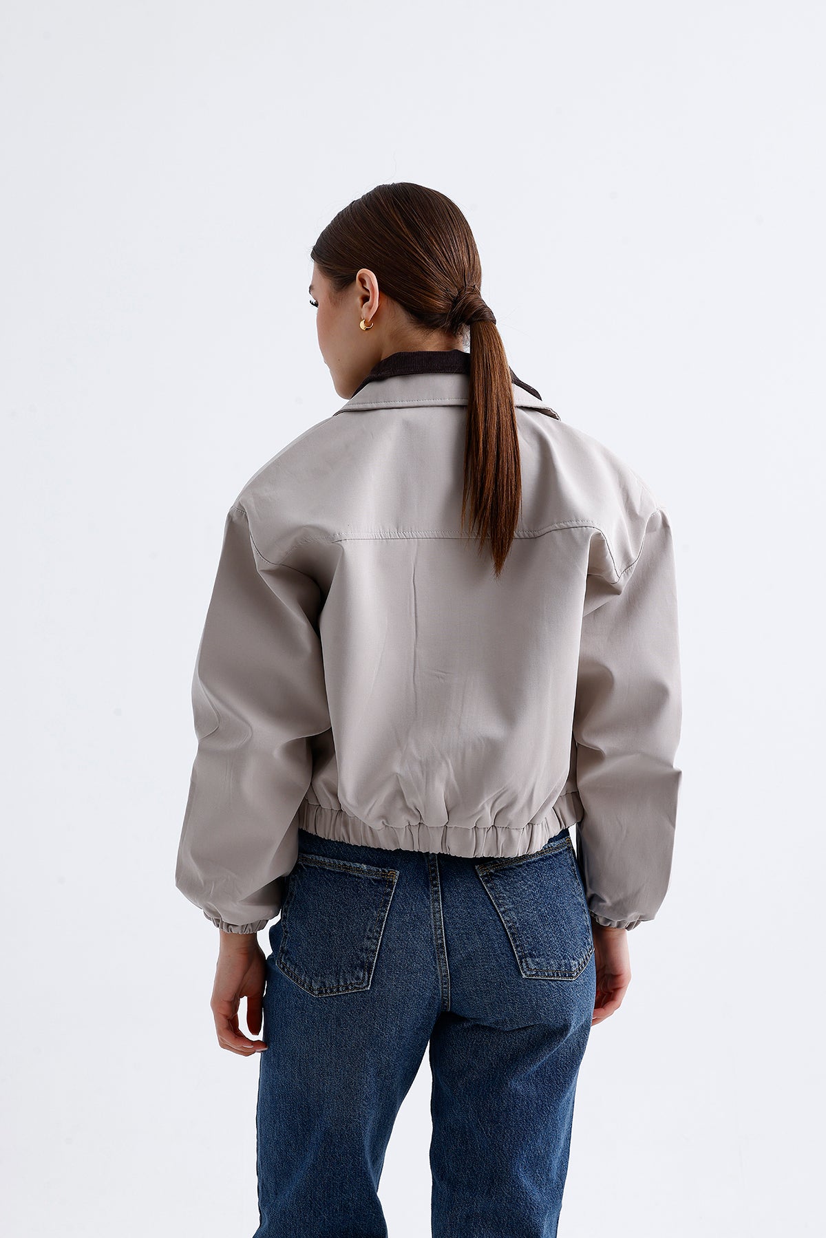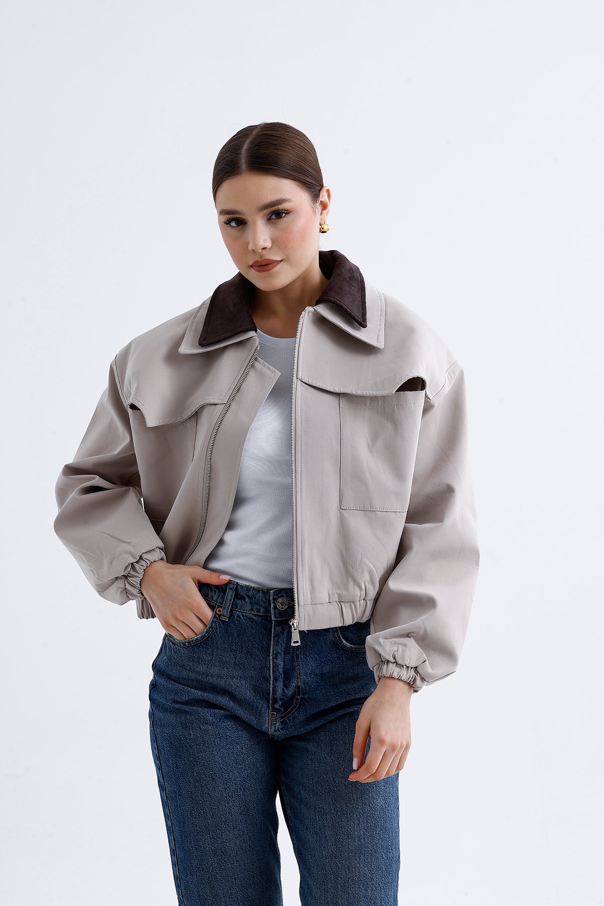 Bej rengiyle her kombine kolayca uyum sağlayan bu kısa kadın ceket, modern kesimiyle sade ama şık bir görünüm sunar. Hafif yapısı sayesinde mevsim geçişlerinde ideal bir tercih olurken, tişört, gömlek ve elbiselerle rahatlıkla kombinlenebilir.