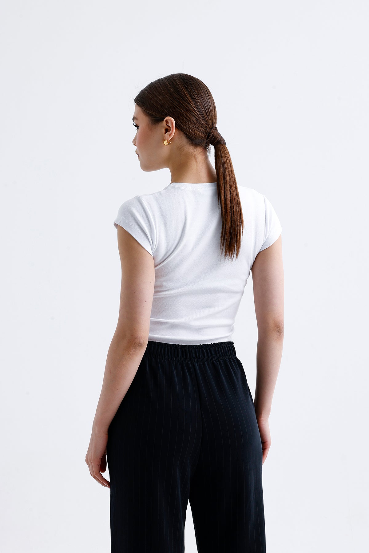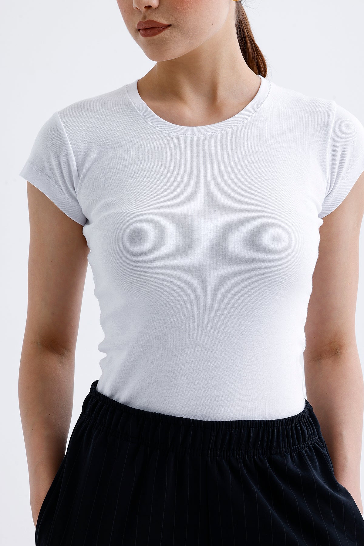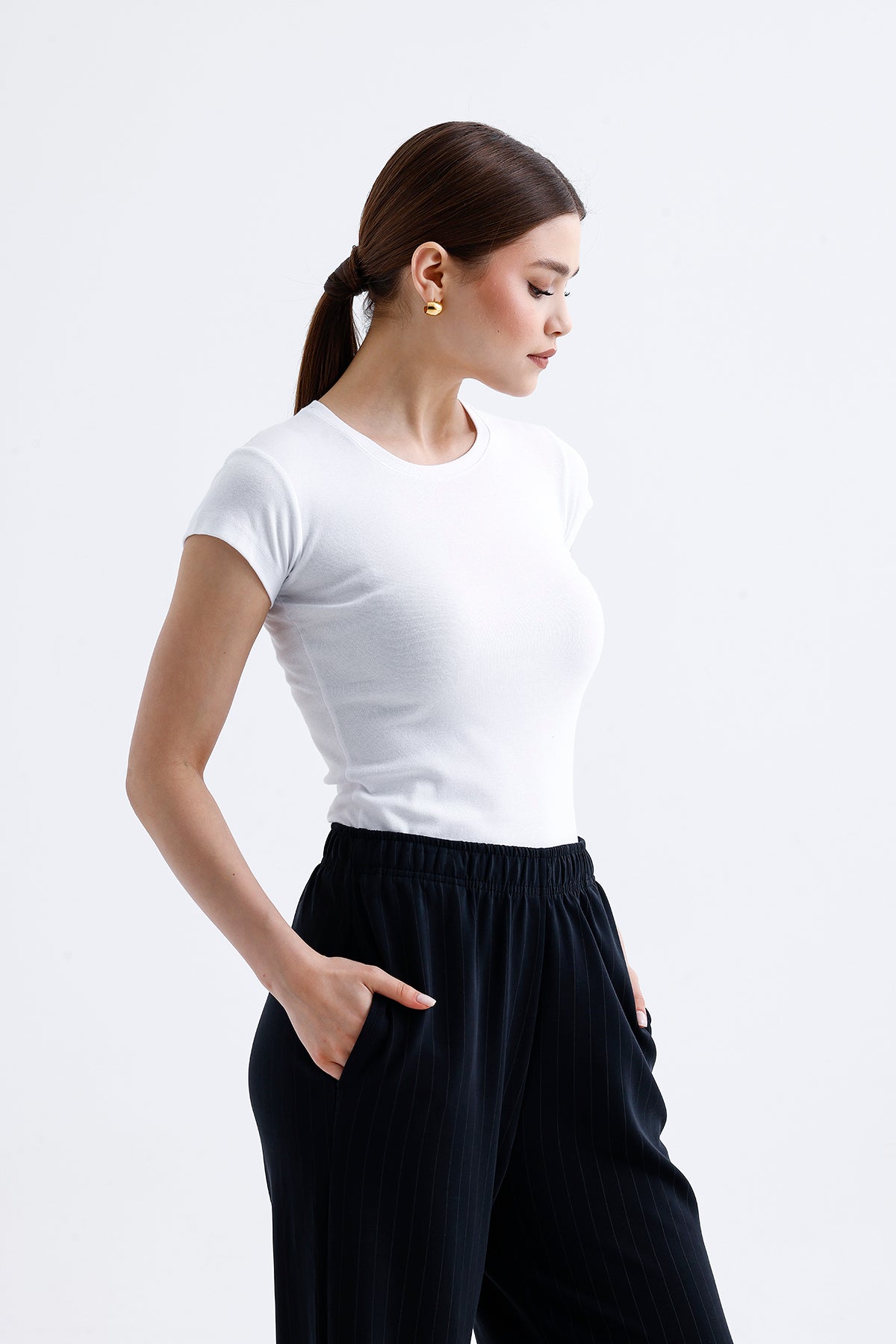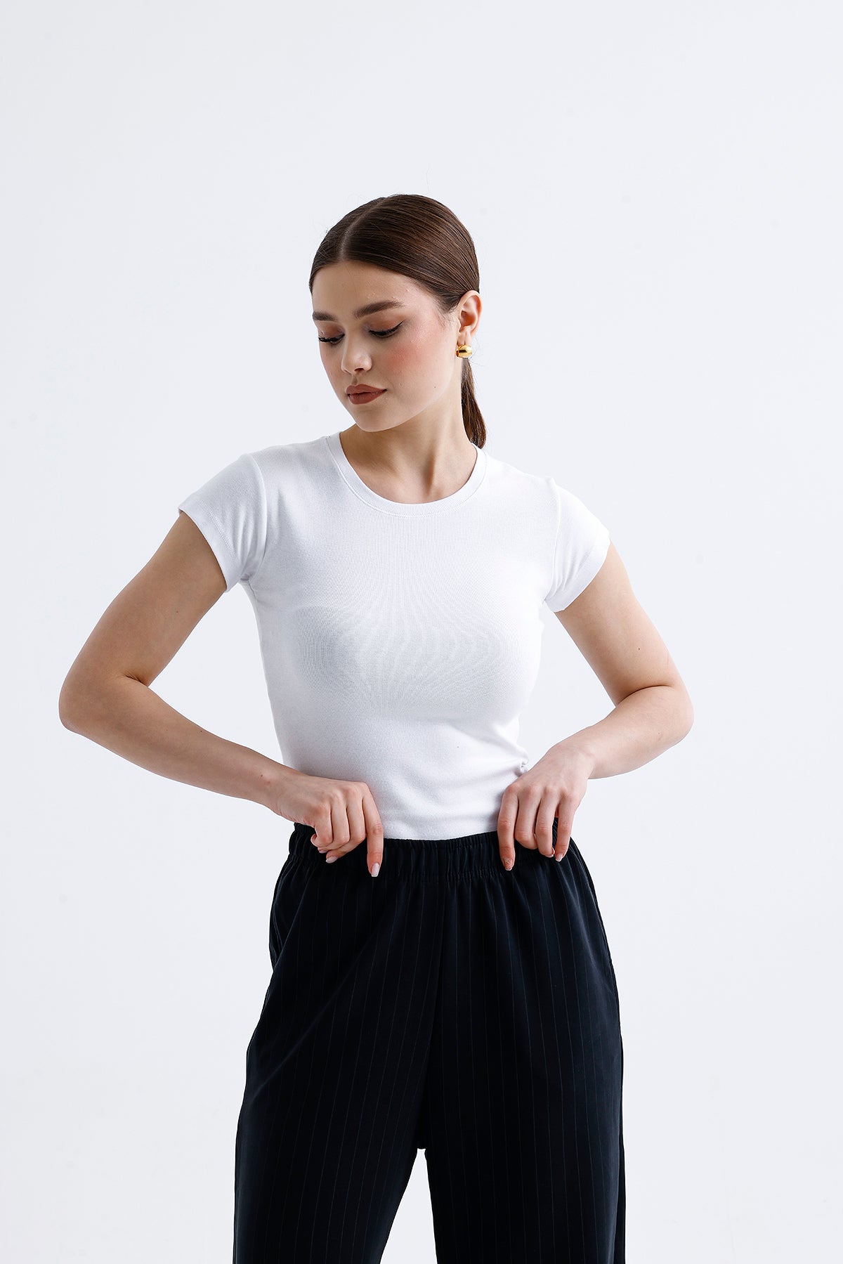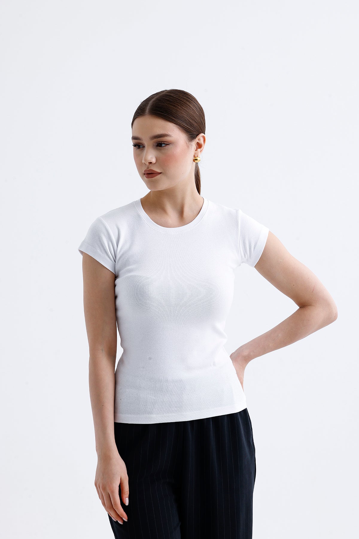 Kadın Fit Basic Tişört – Beyaz Renk Esnek Pamuklu Kumaş