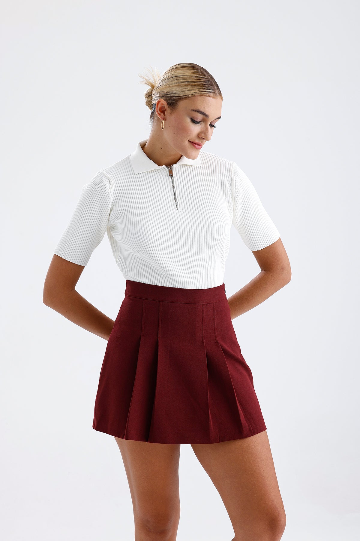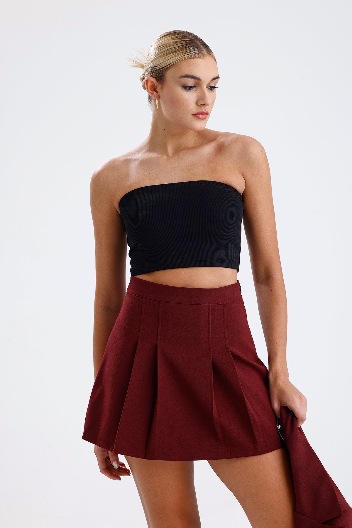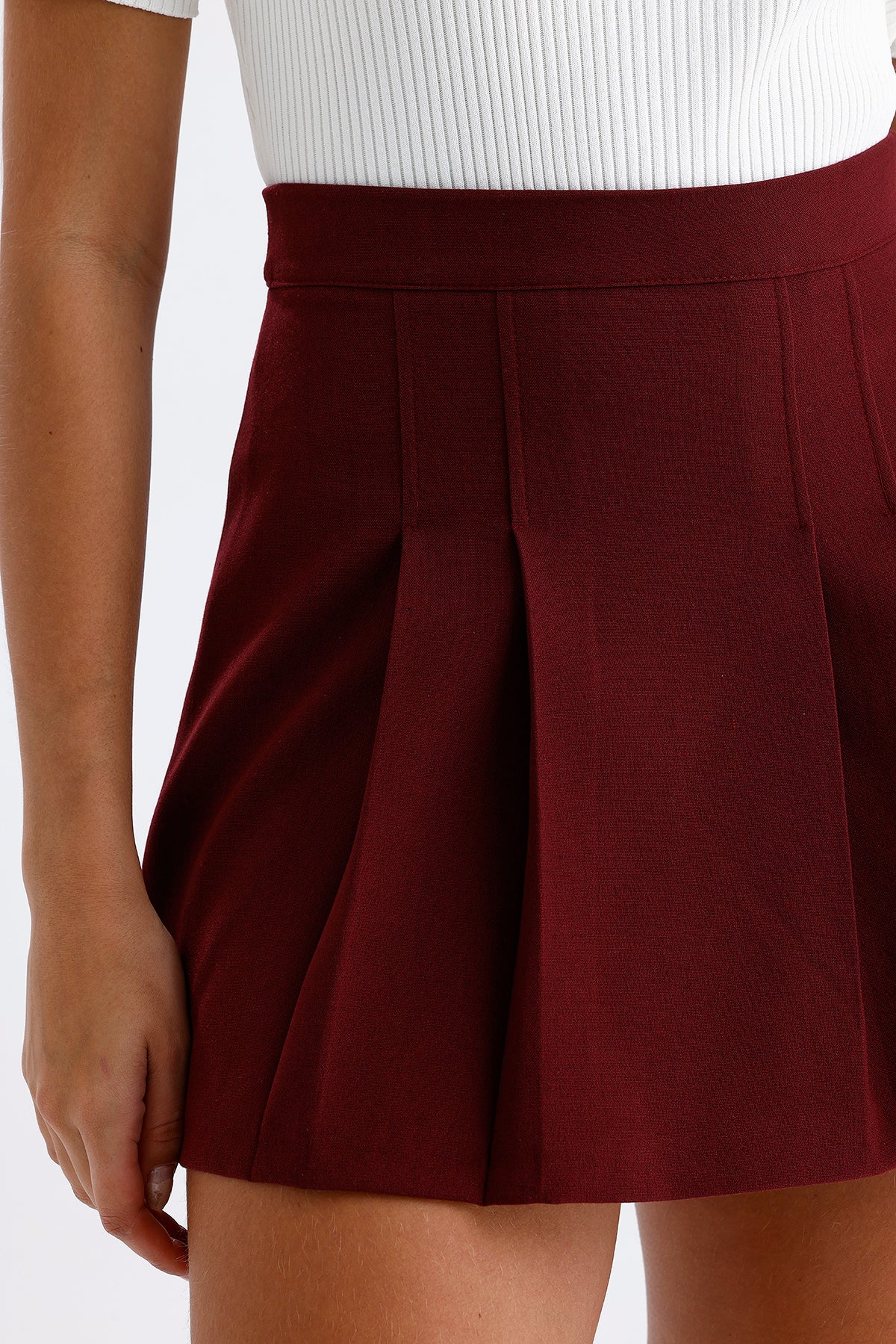 Kadın Pileli Etek – Bordo Renk Pile Detaylı Modern Kesim
