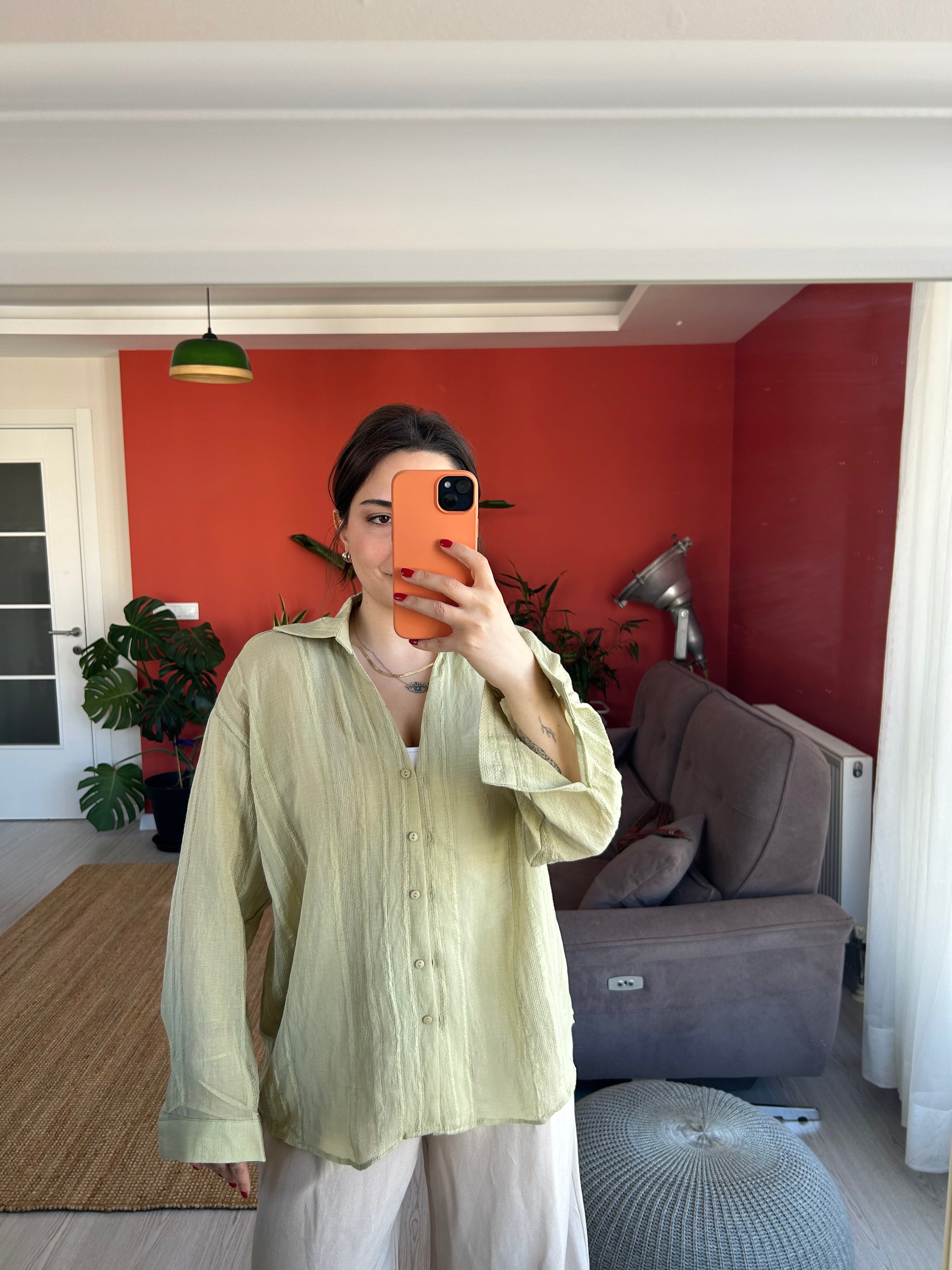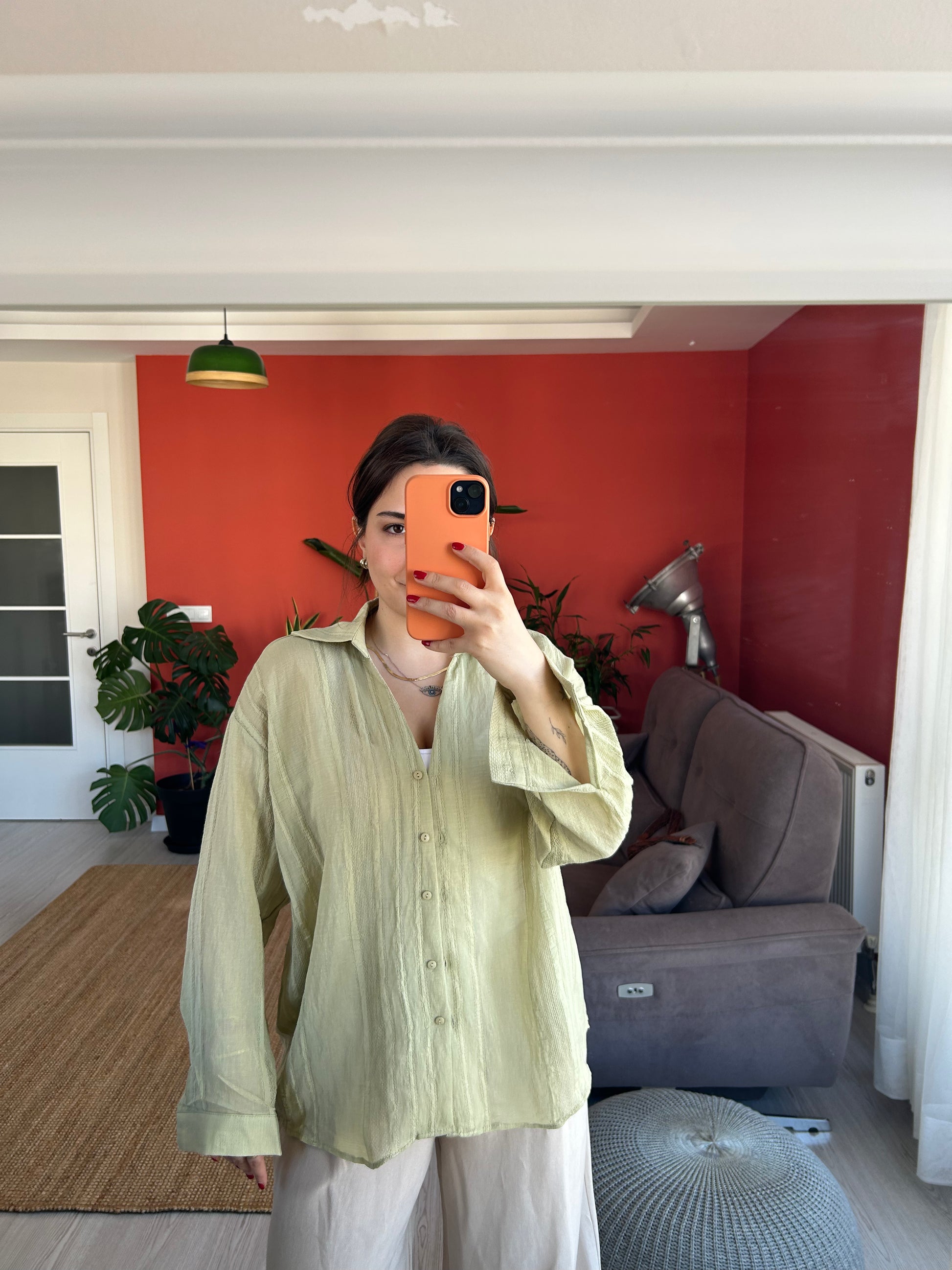 Kadın Gömlek – Yeşil Transparan Kumaş Rahat ve Klasik Stil