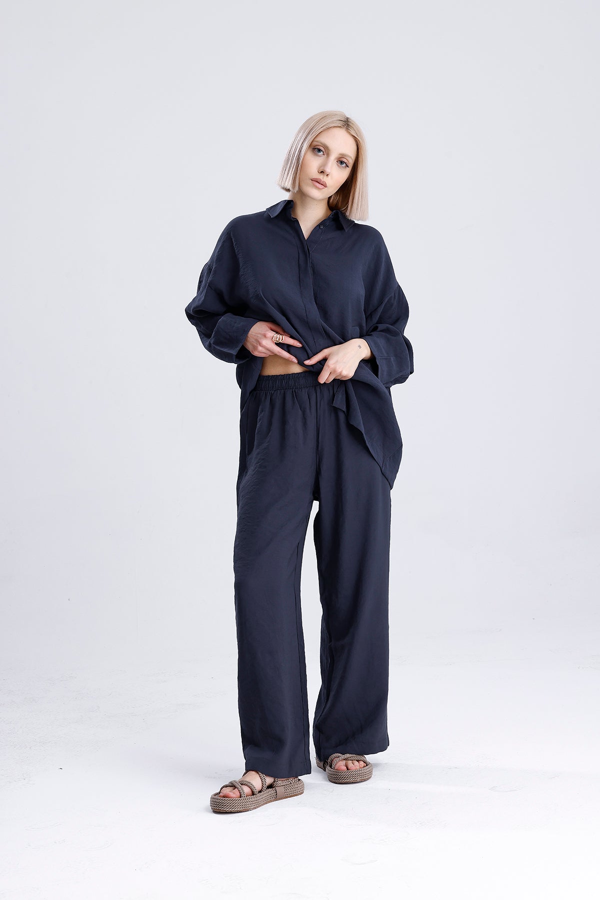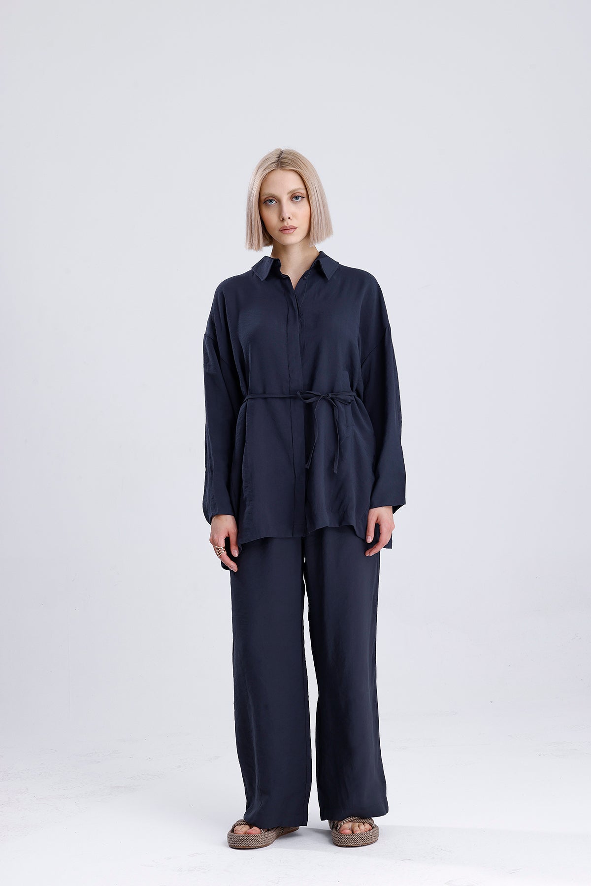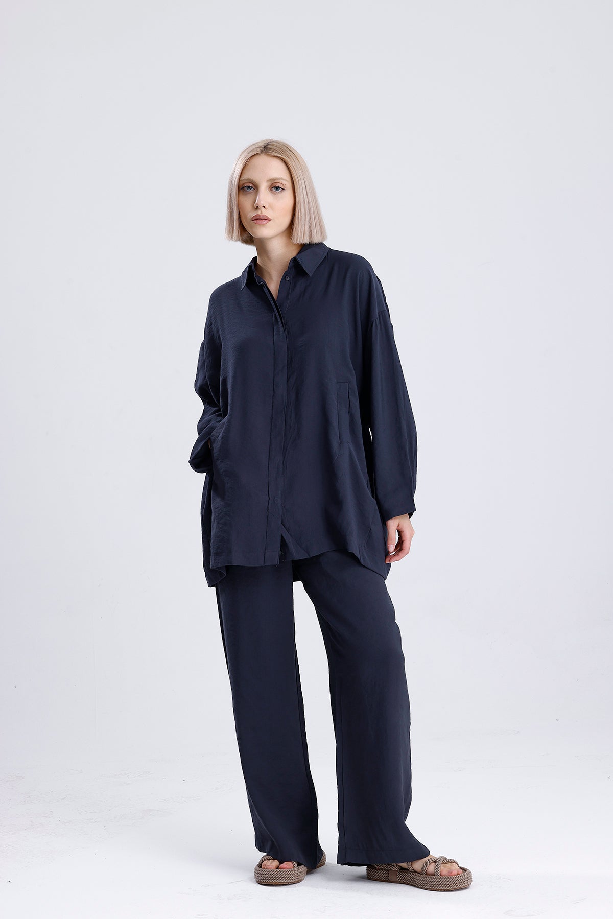 Kadın Gömlekli Modal Takım – Antrasit Renk Dökümlü İkili Set