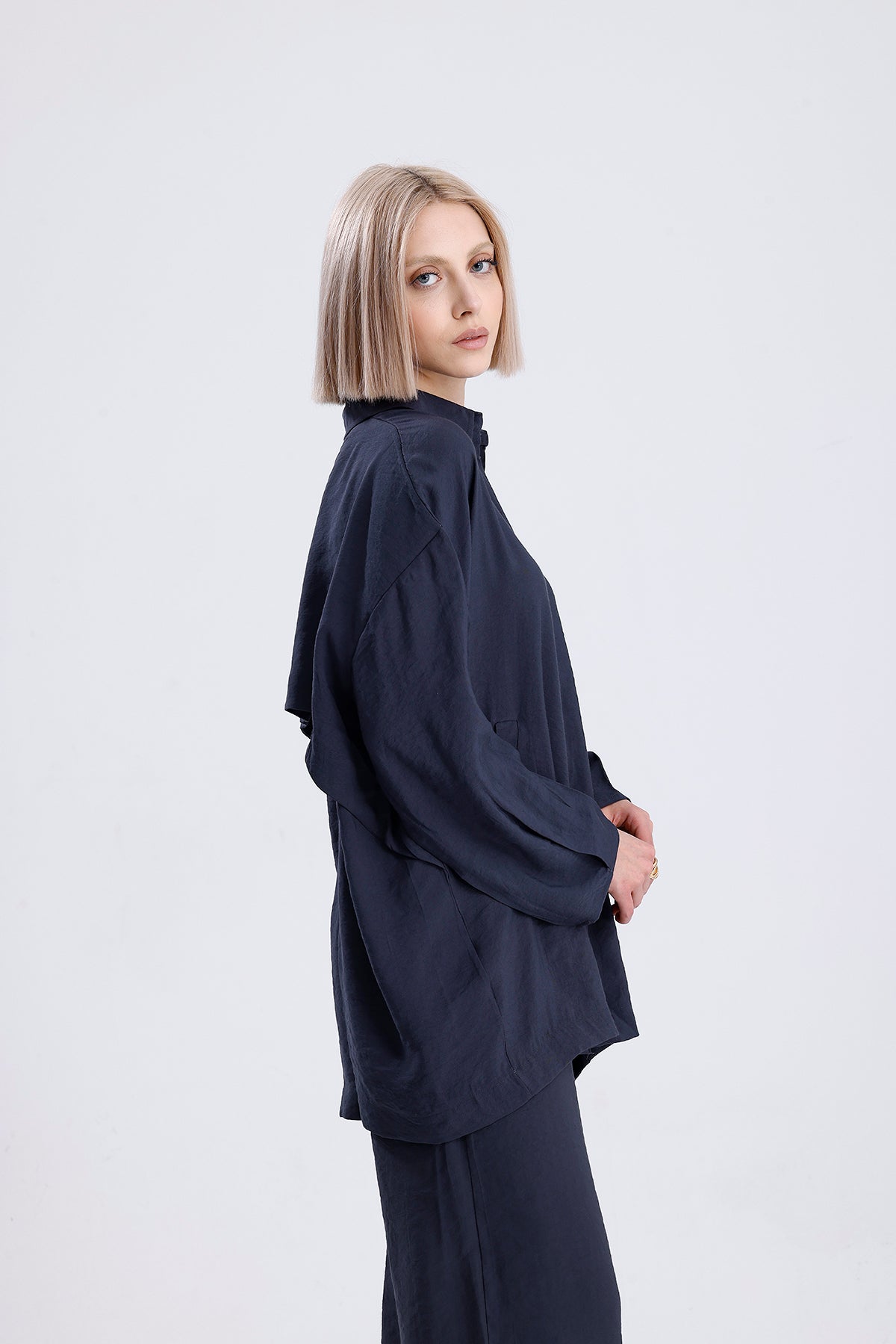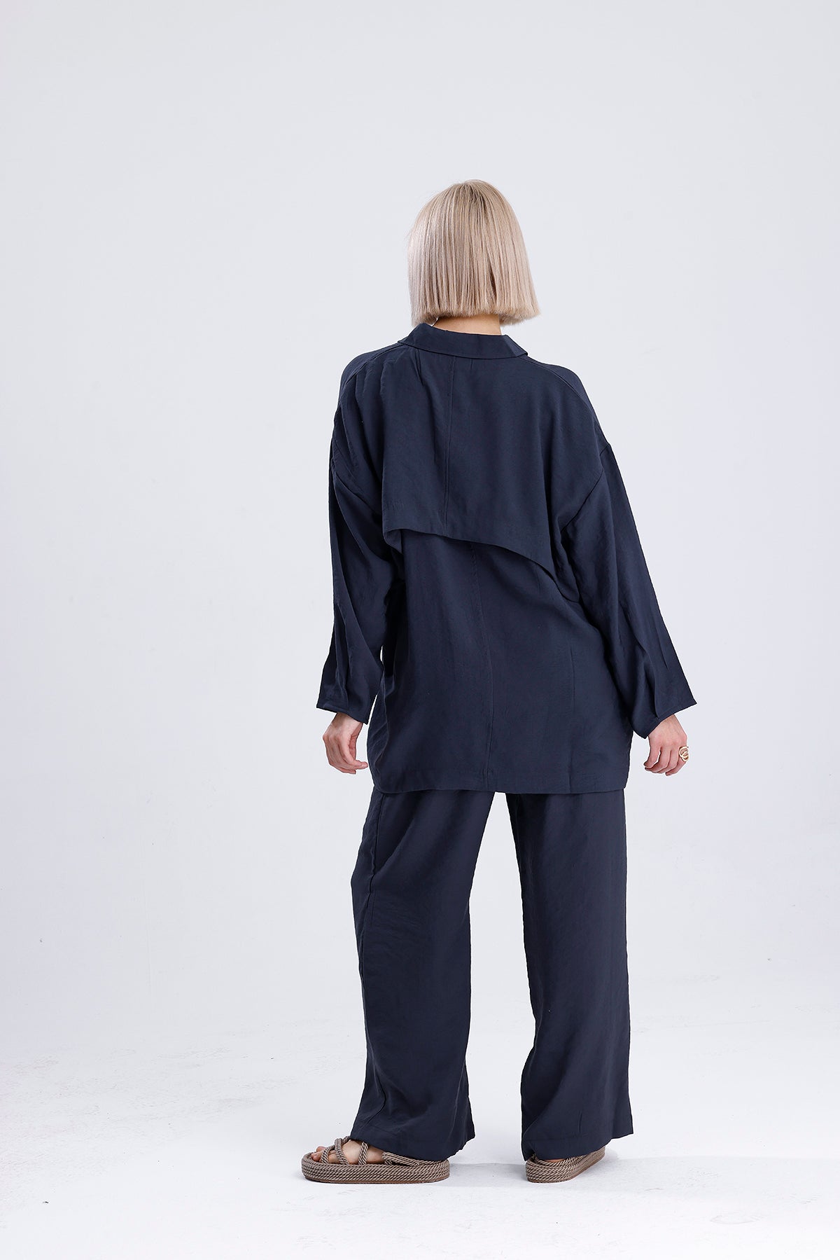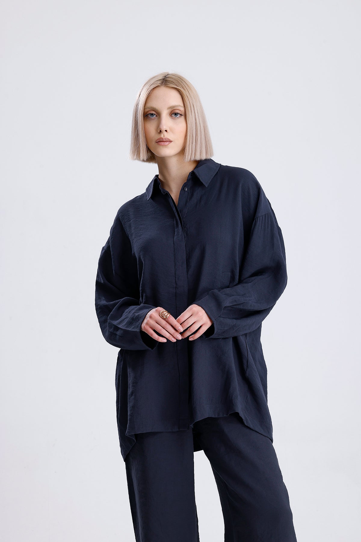 Kadın Gömlekli Modal Takım – Antrasit Renk Dökümlü İkili Set