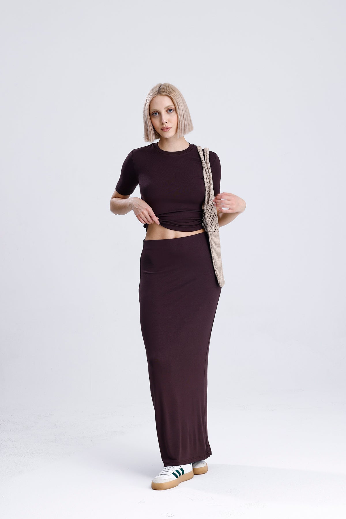 Yumuşak dokusu ve %100 pamuklu yapısıyla öne çıkan bu kahverengi kadın body, konforu ve sade şıklığı bir araya getirir. Cilde dost, esnek yapısı sayesinde günlük kullanımda vazgeçilmezdir.
