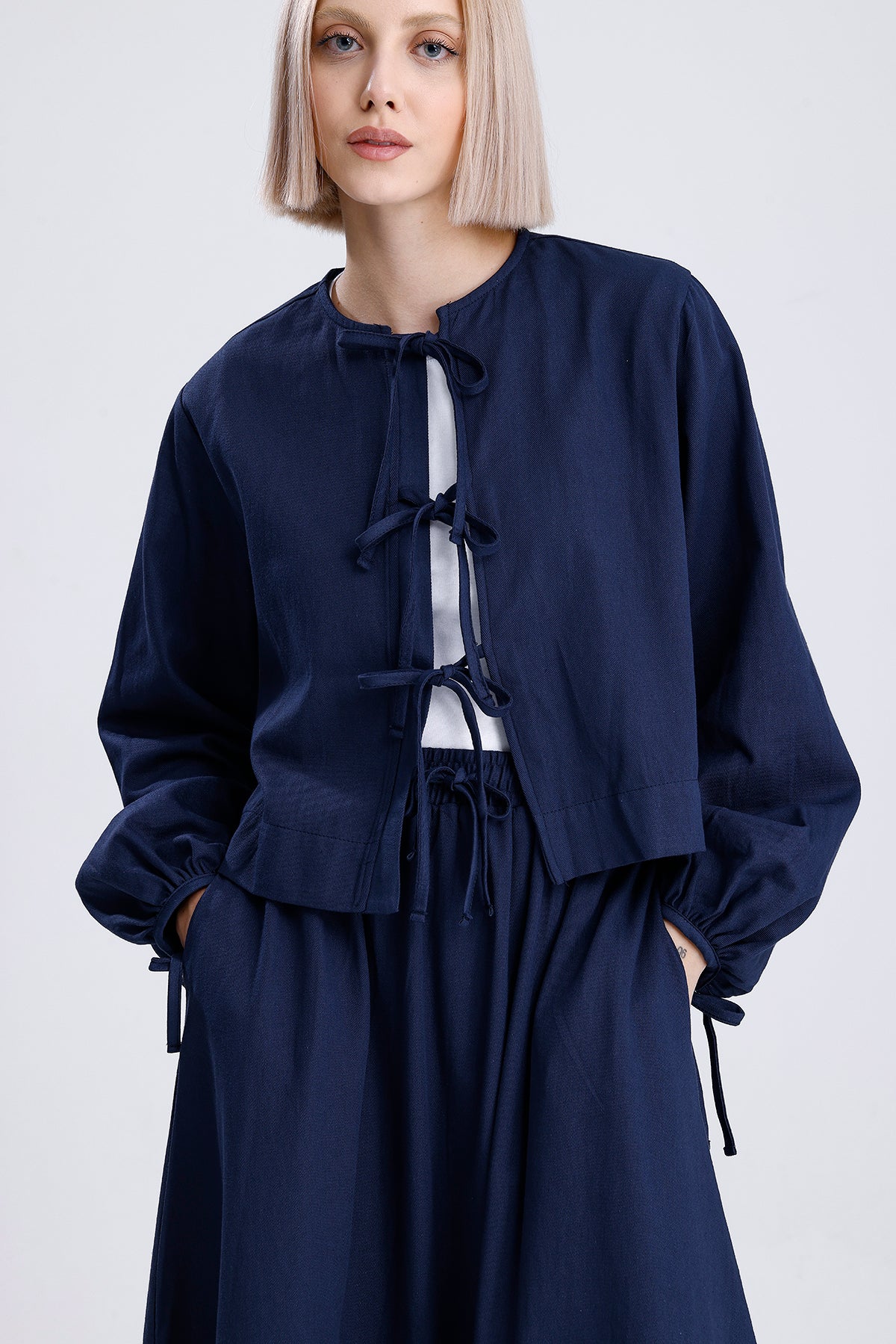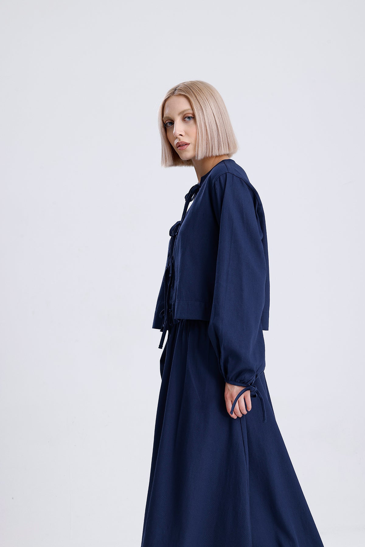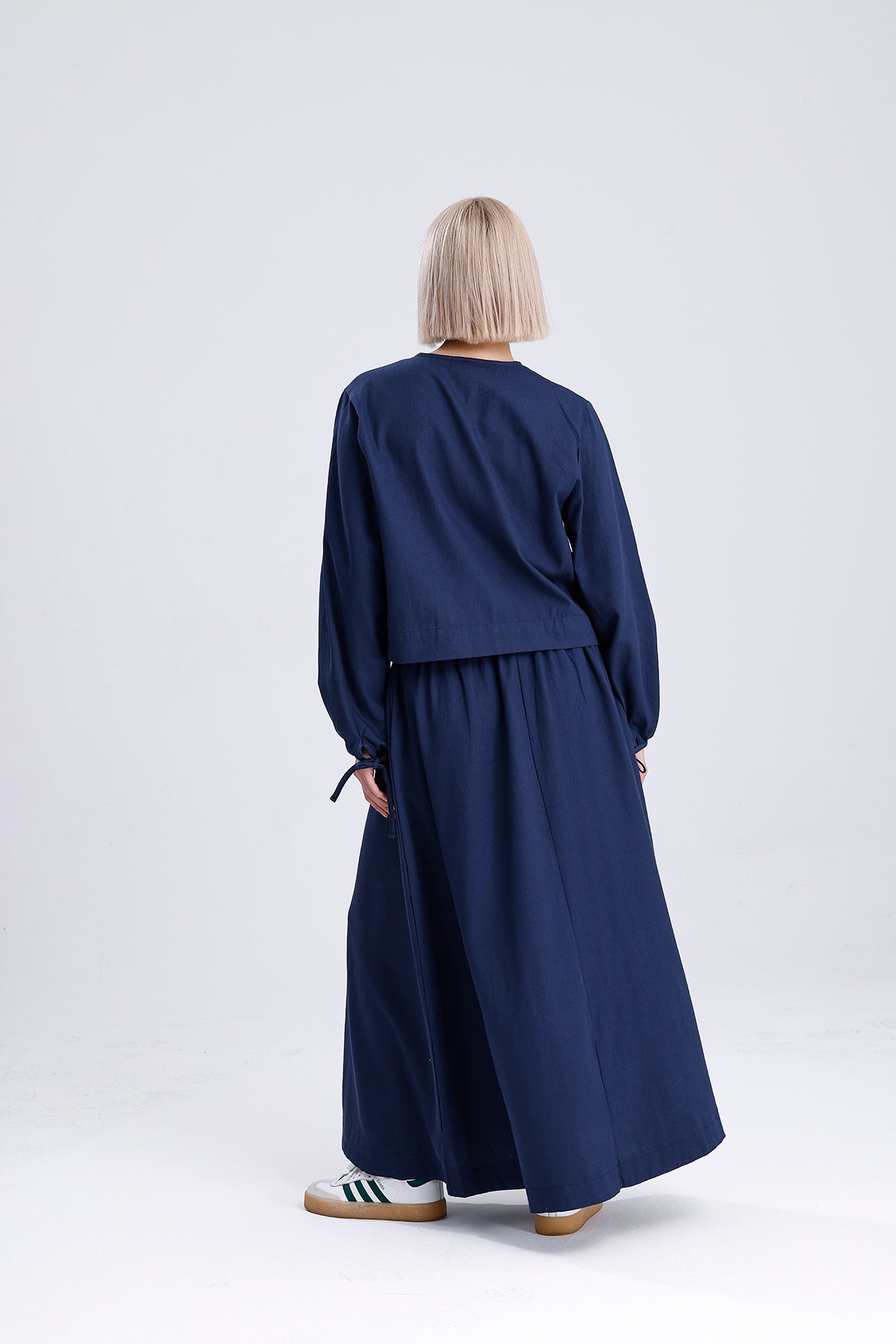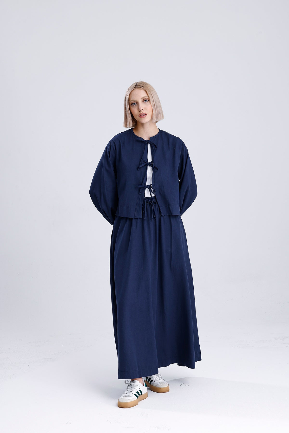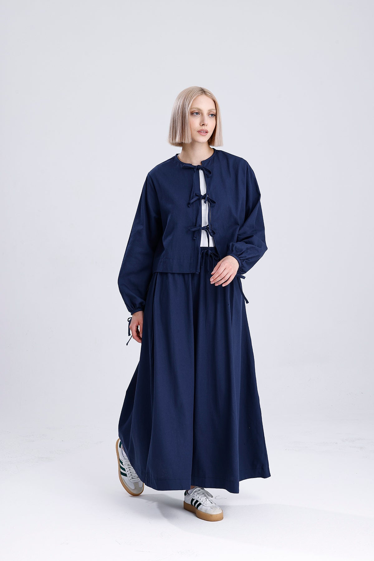 Kadın Kimonolu Etekli Takım – Lacivert Renk Şık ve Rahat İkili Set