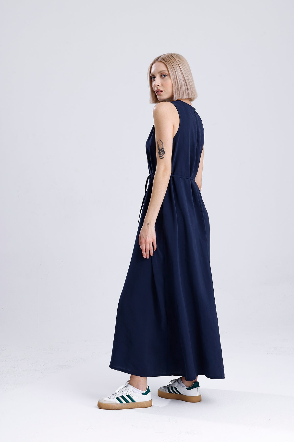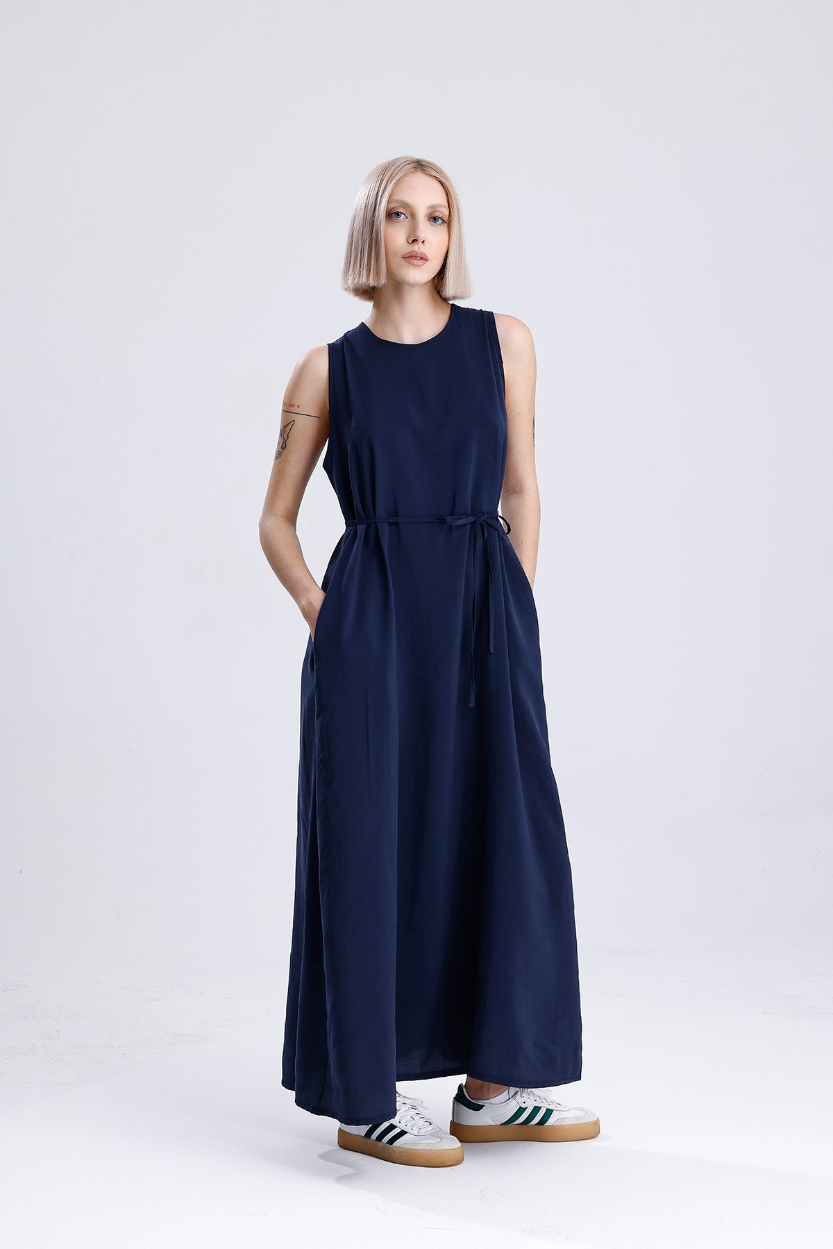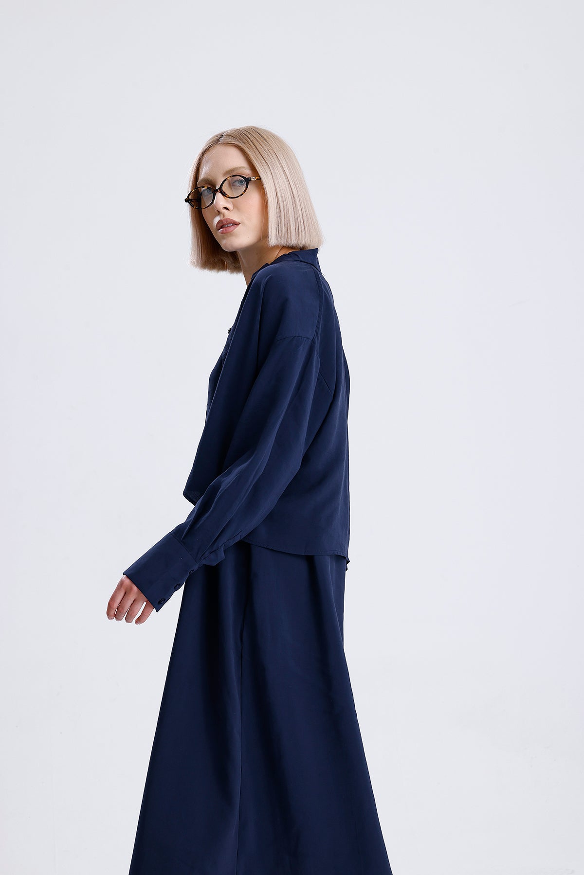 Modal kumaşın dökümlü ve hafif yapısıyla tasarlanan bu lacivert kadın takım, elbise ve gömlekten oluşan ikili yapısıyla modern bir şıklık sunar. Günlük stilinizi yükseltirken konfordan da ödün vermez; hem ayrı ayrı hem birlikte kombinlenebilir.