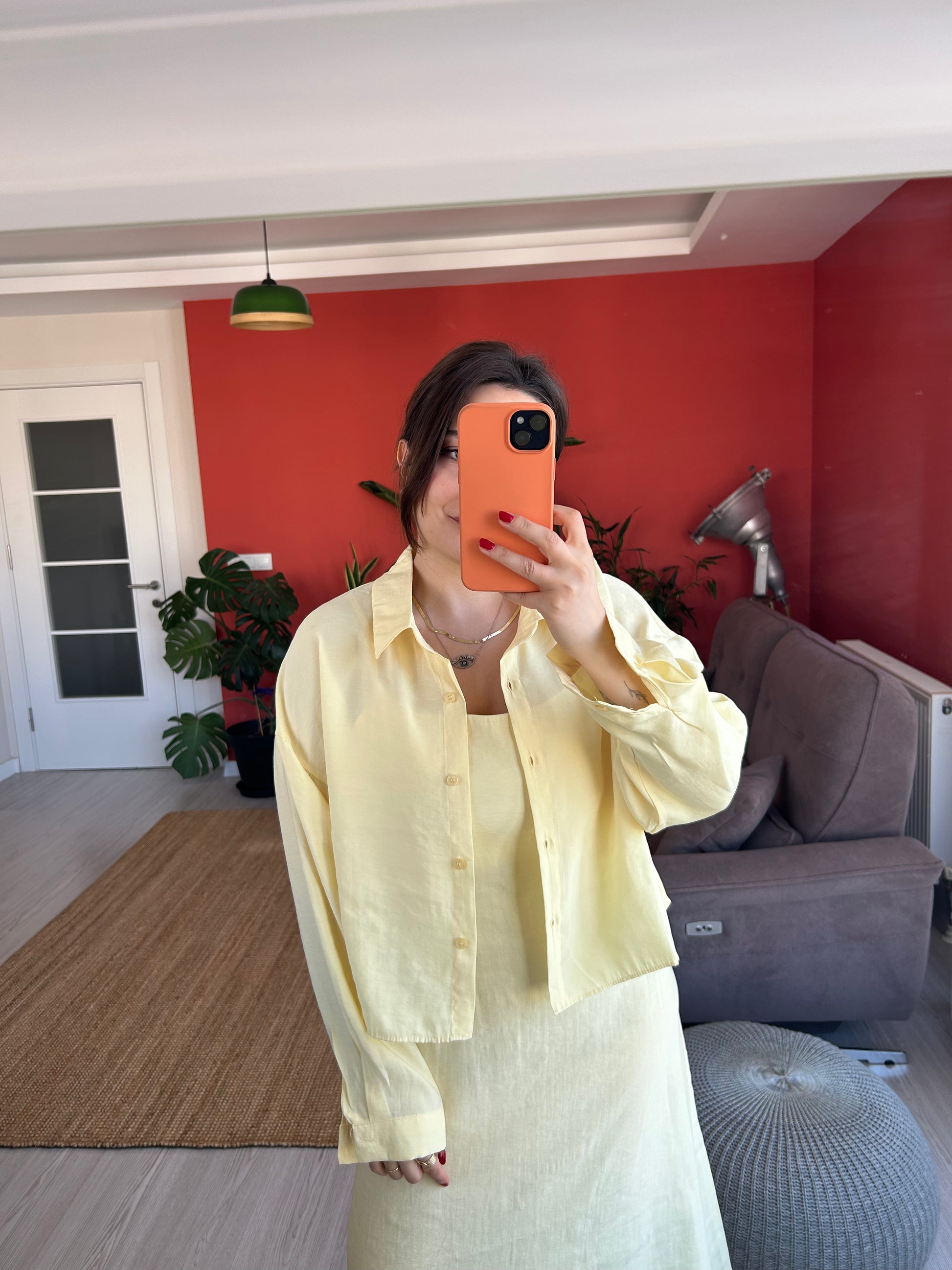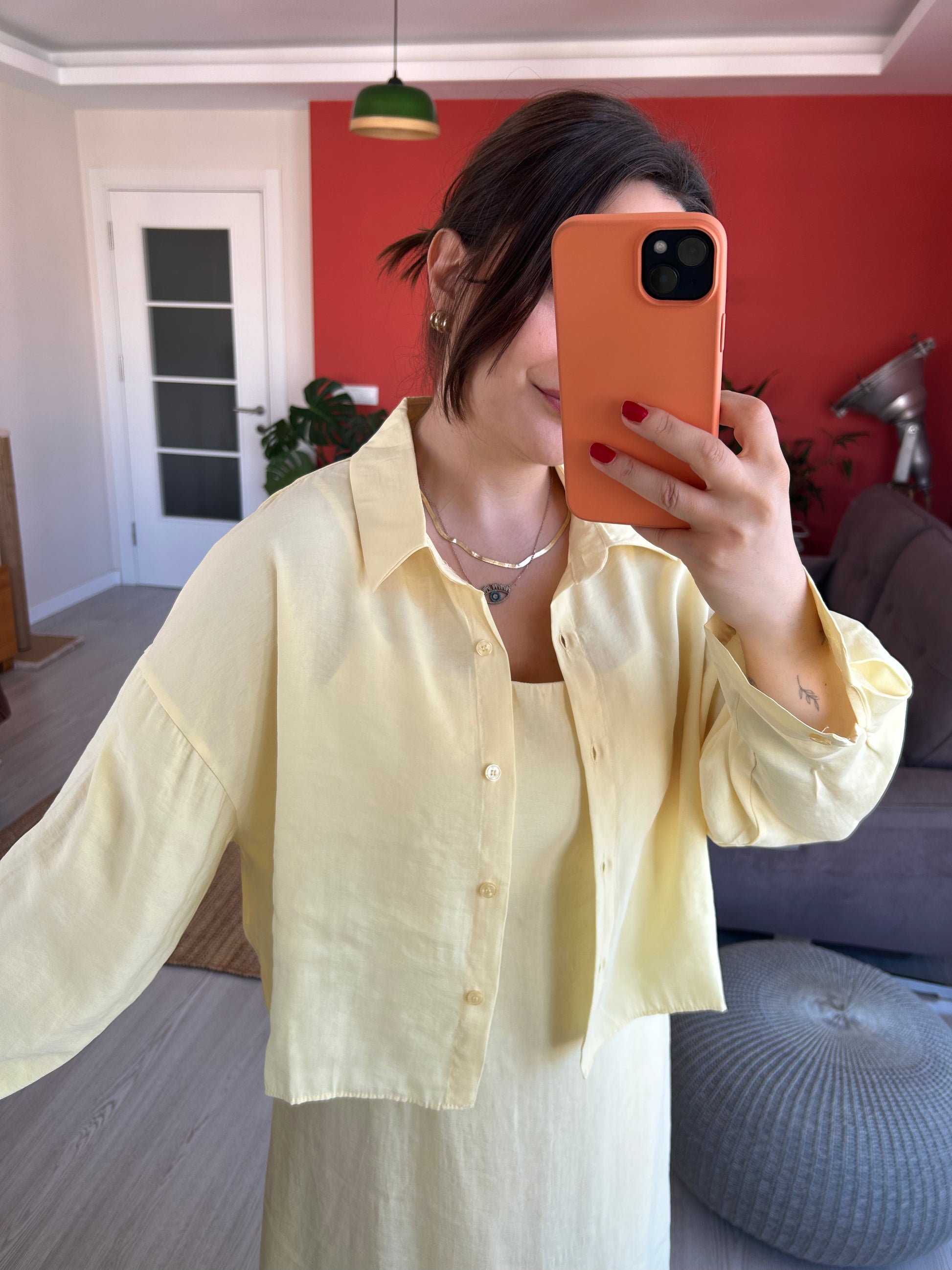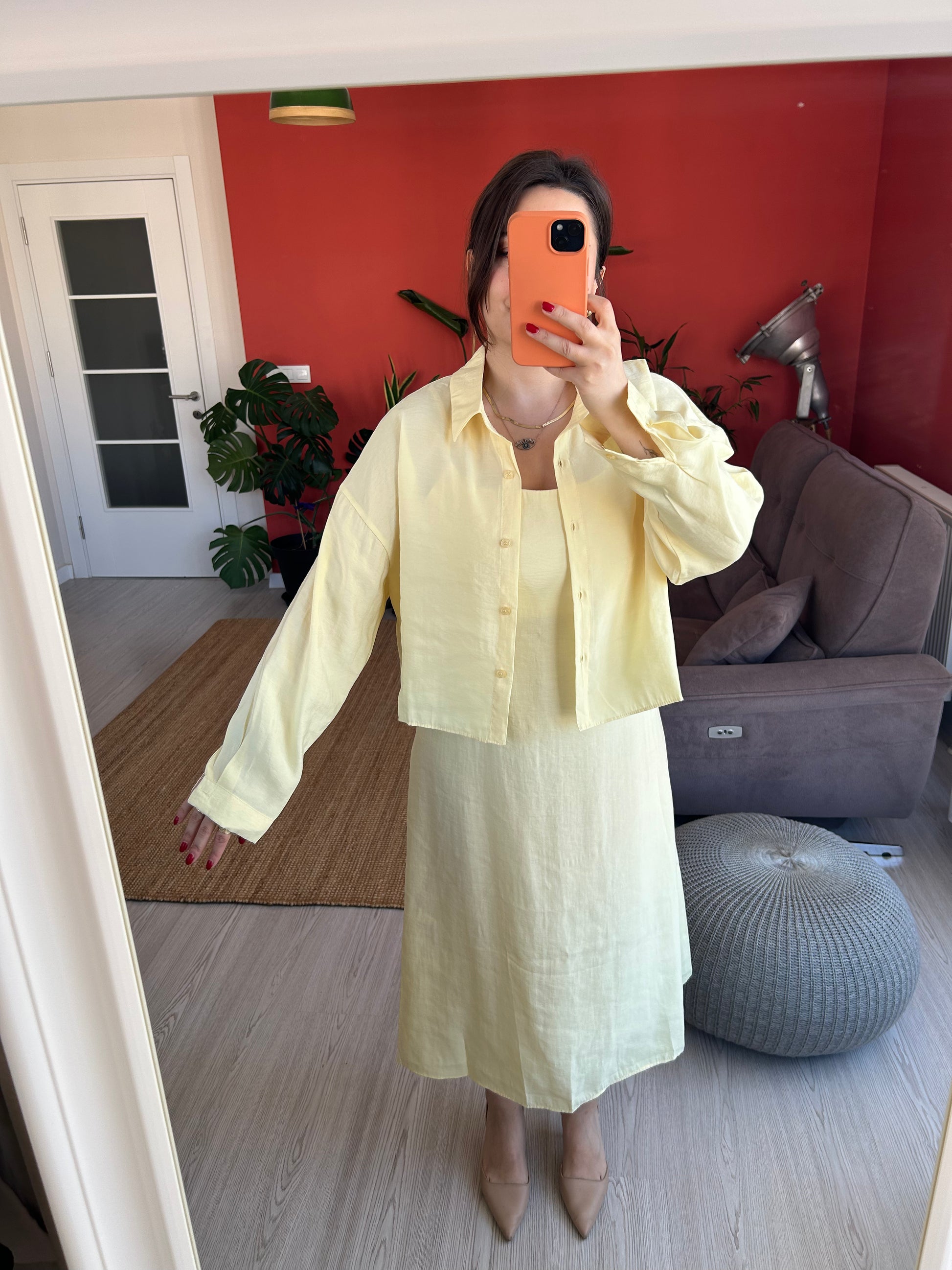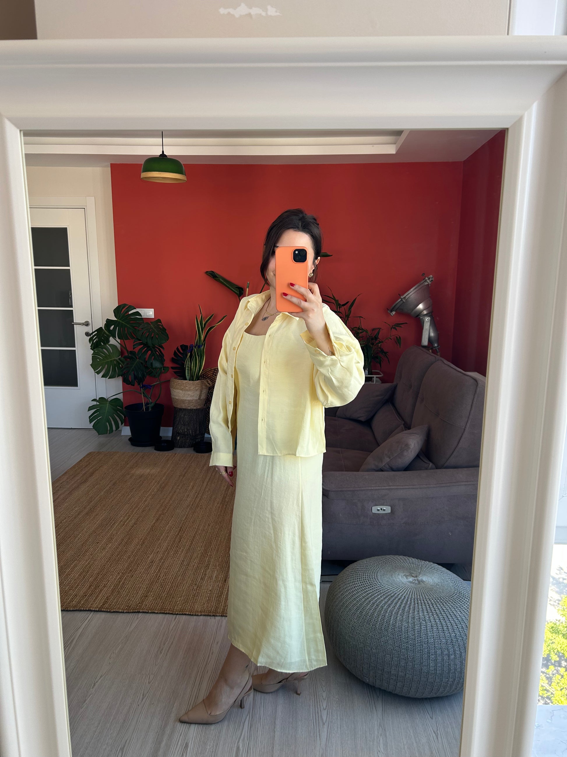 Kadın Modal Takım – Sarı Elbiseli Gömlekli İkili Set