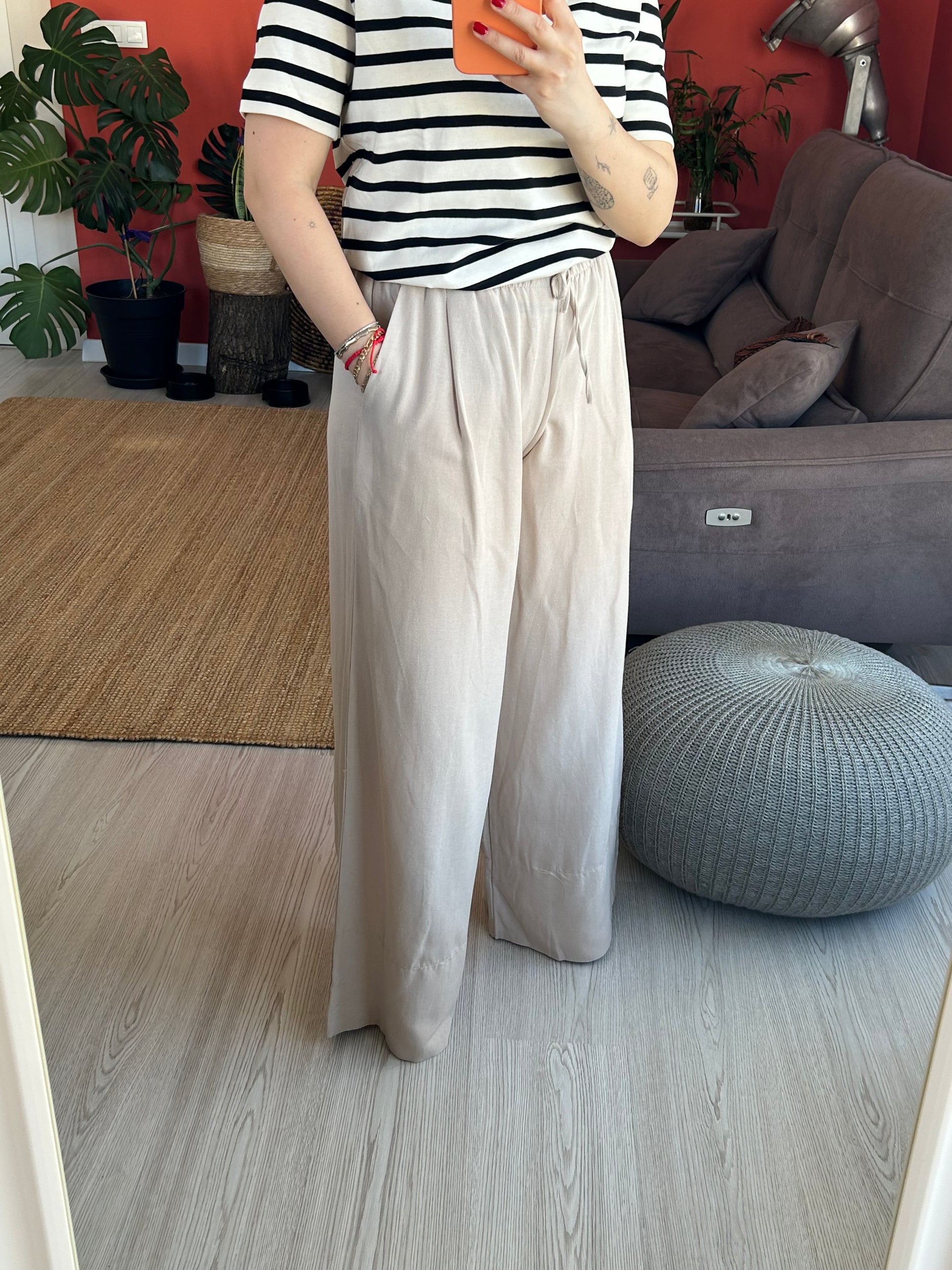 Şehir stiline modern bir dokunuş katan bu rahat kesim pantolon, kesimi ve dokusuyla ofisten hafta sonuna kadar birçok stile kolayca uyum sağlar.