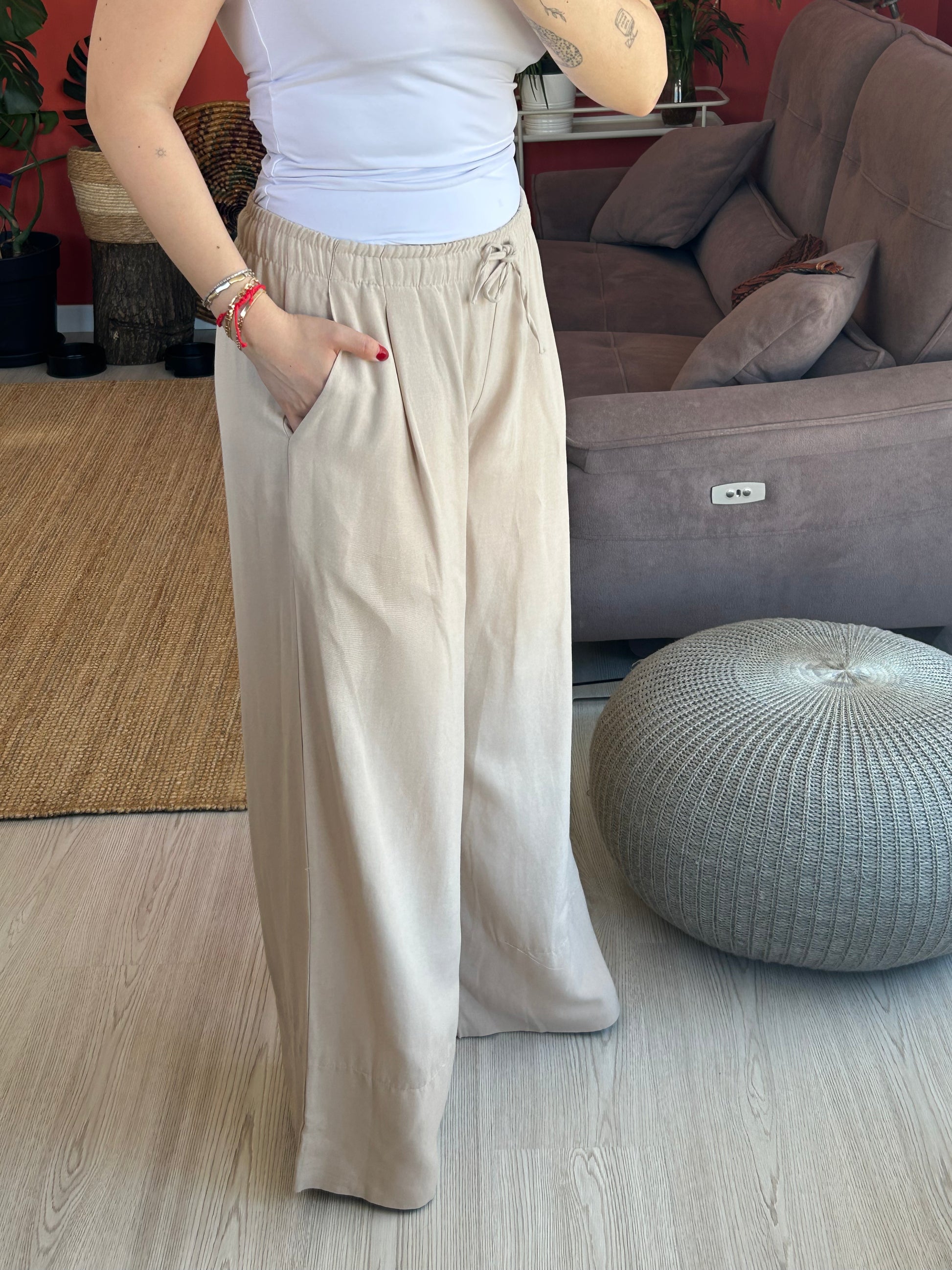 Kadın Pantolon – Bej Rahat Kesim