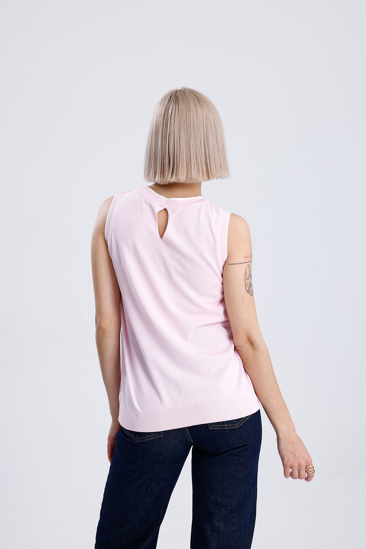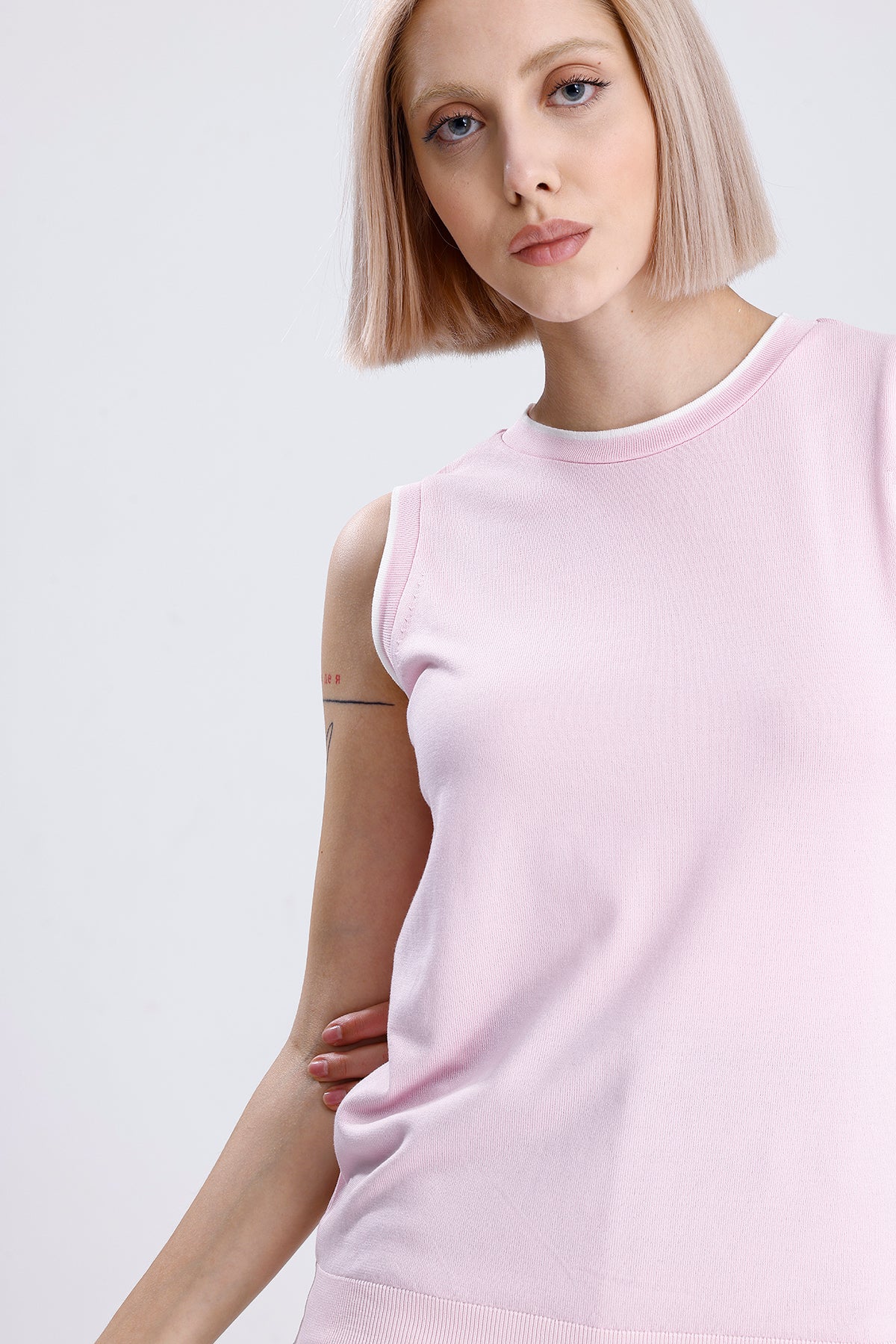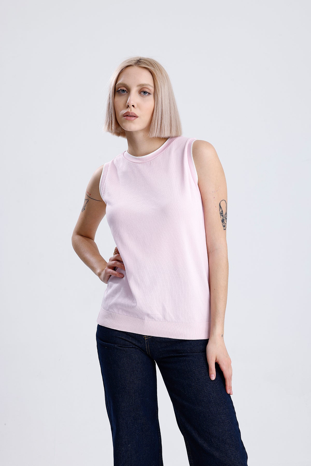 Kadın Kolsuz Triko Tişört – Pembe Renk, Yazlık Şık Üst