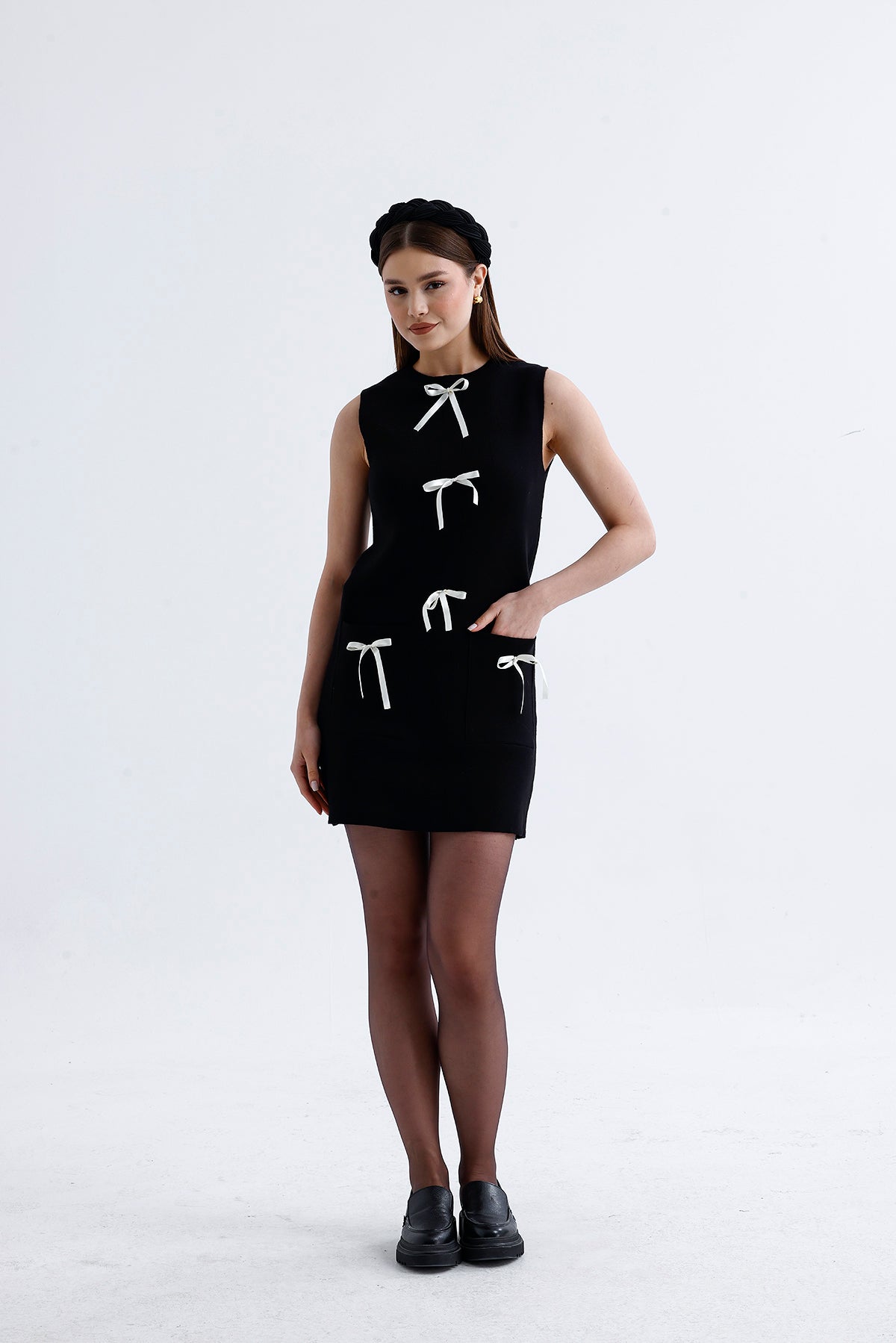 Kadın Triko Elbise – Siyah Fiyonk Detaylı Şık ve Zarif Stil
