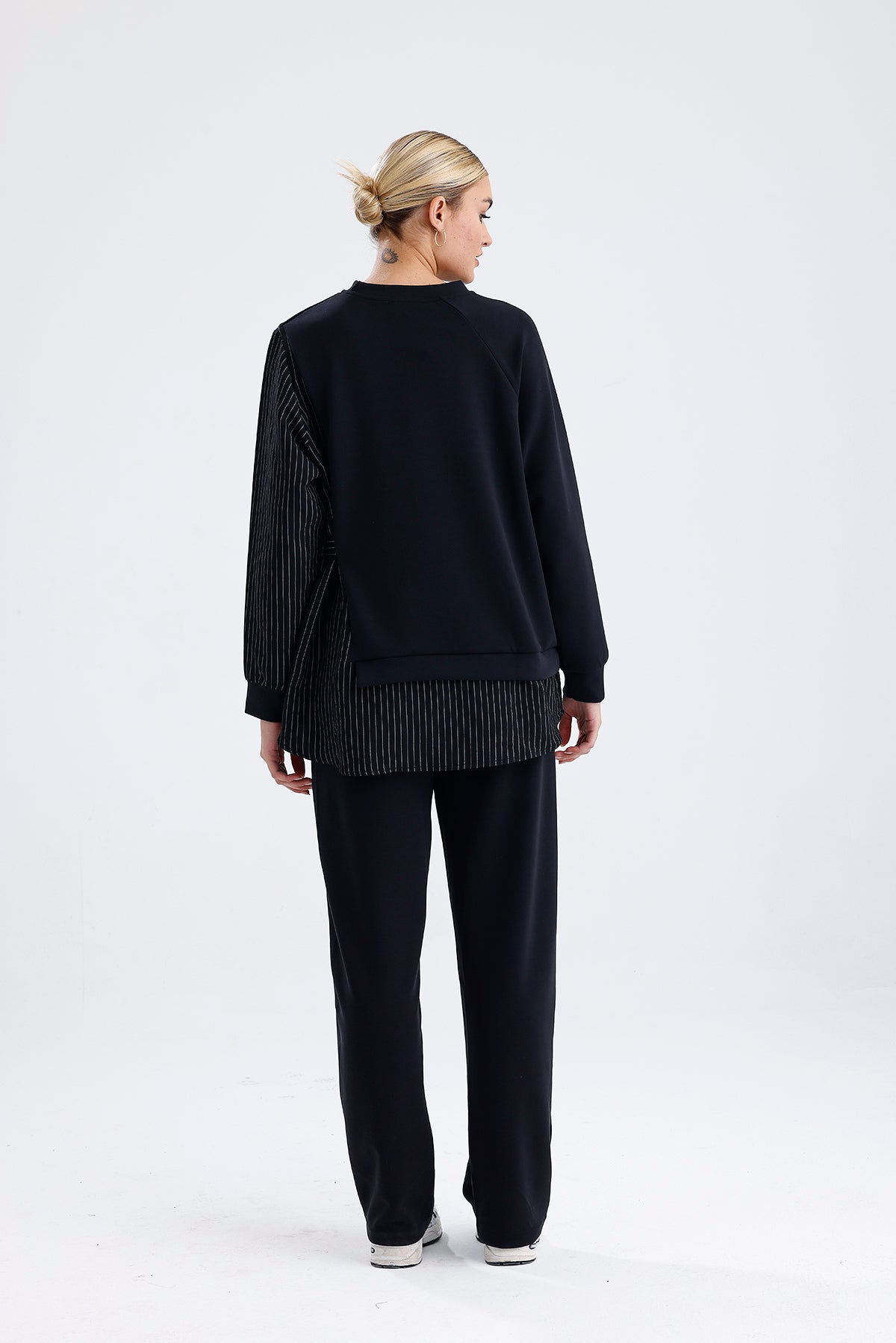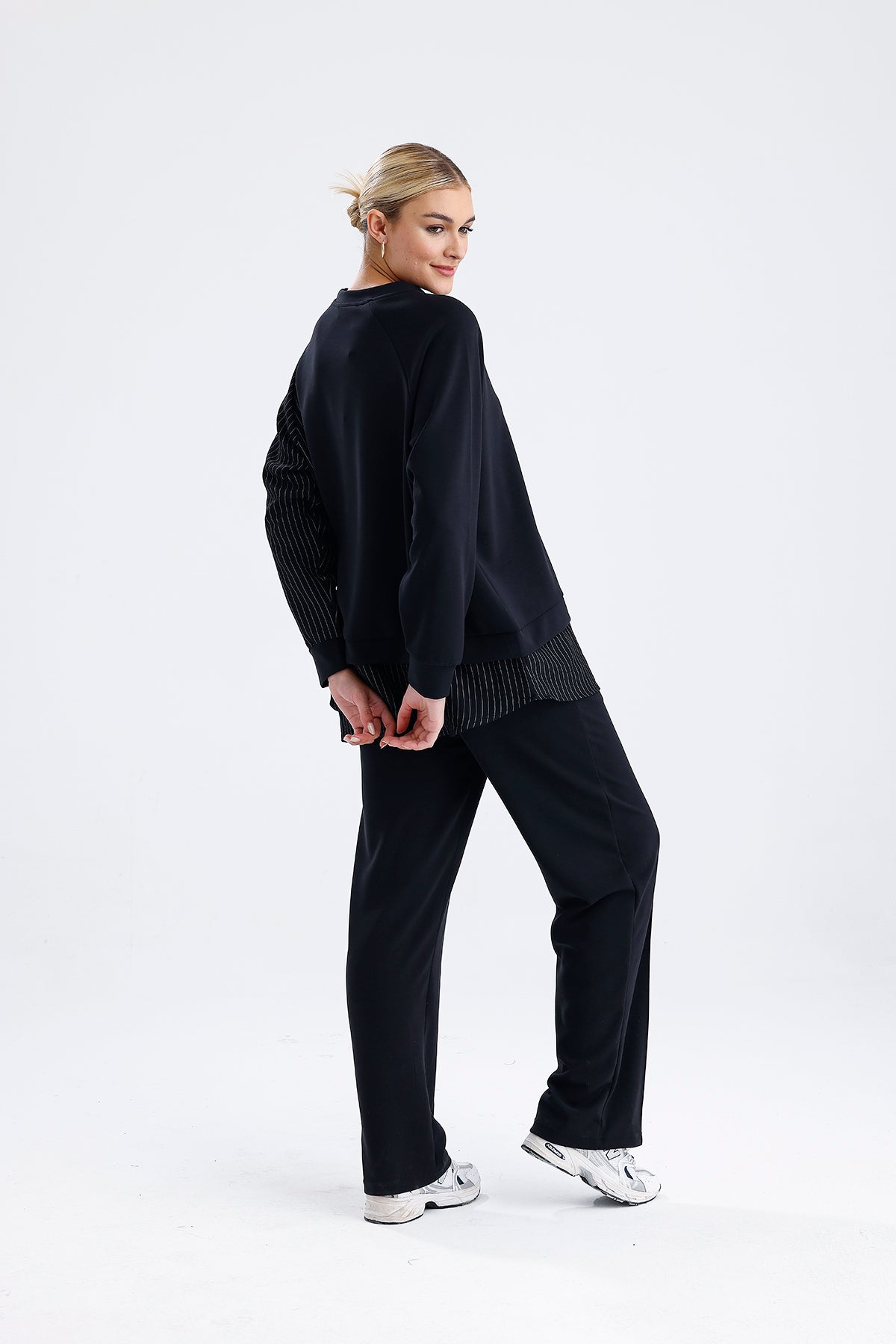 Kadın Modal Takım – Siyah Bağlama Detaylı Dökümlü İkili Set