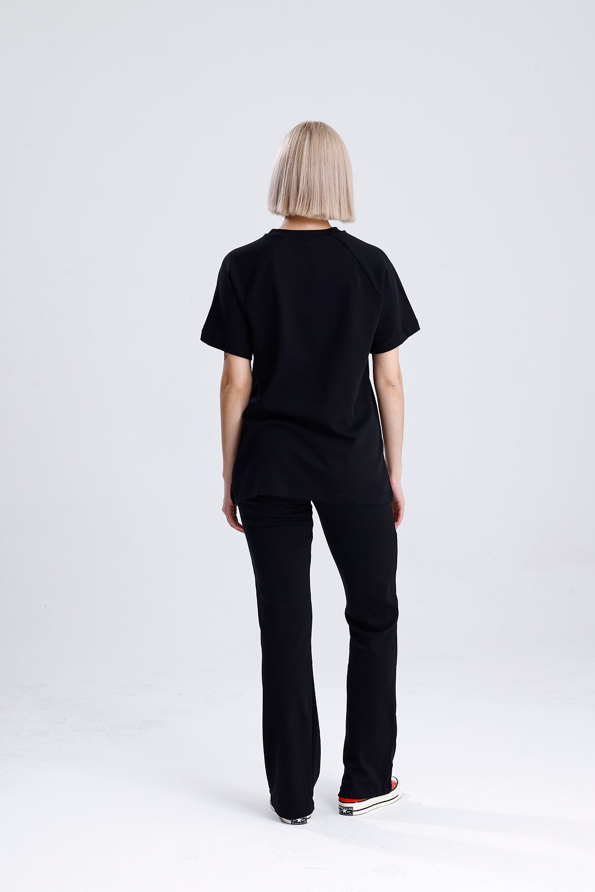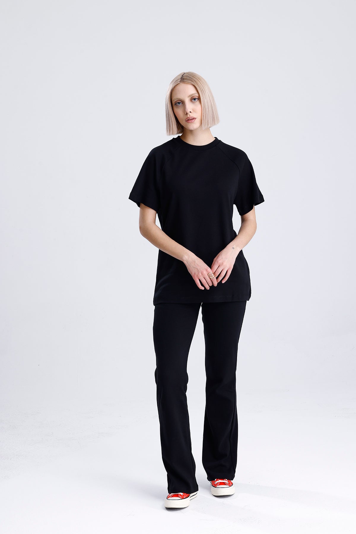 Siyah Kadın Tişört Eşofman Takım – %100 Pamuk Rahat Günlük Stil